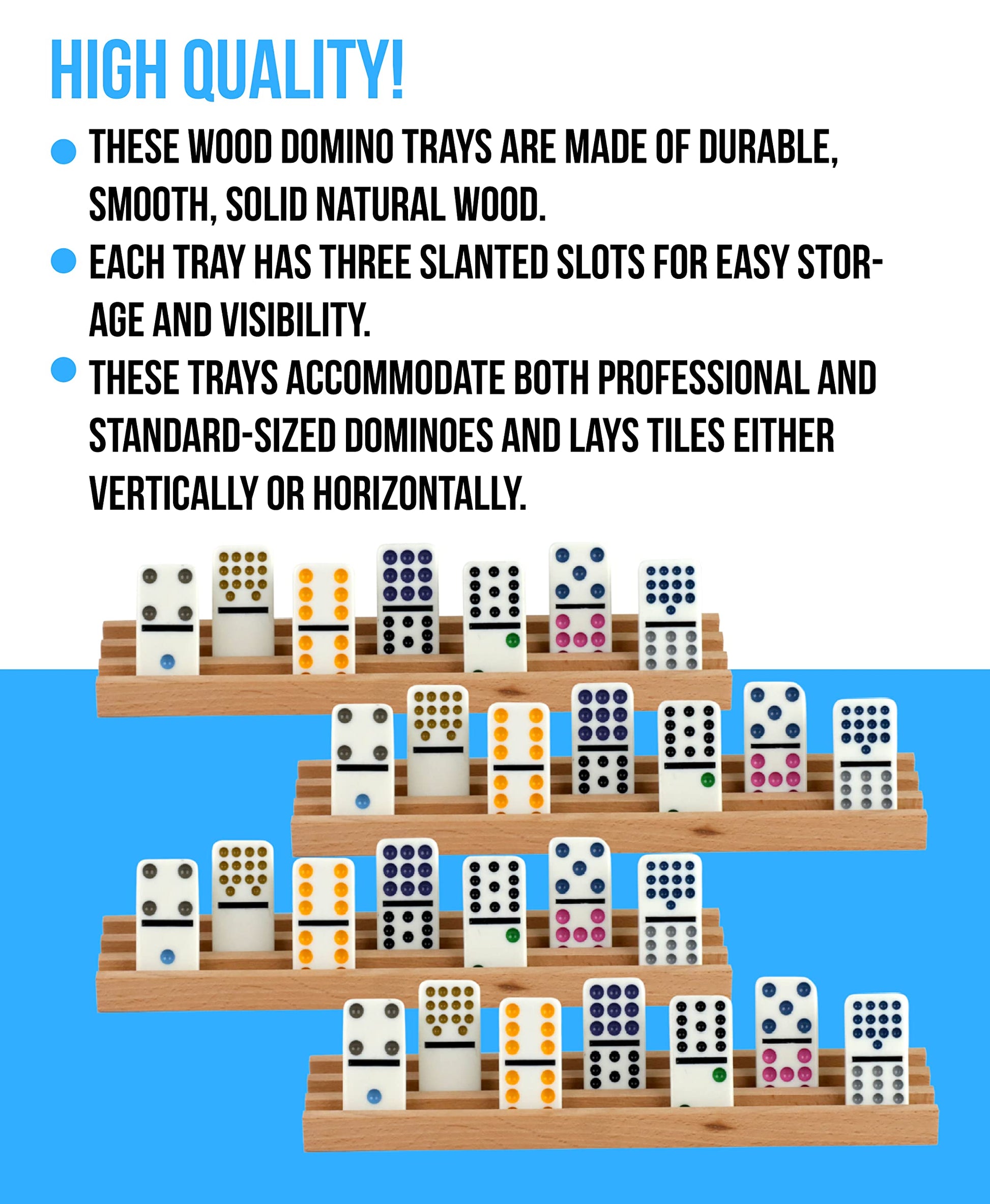 - HIGH QUALITY - These Wood Domino Trays are made of durable, smooth, solid natural wood.